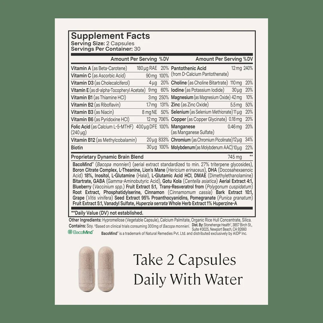 With Dynamic Brain you can boost your brain health and maximize your brain's memory with a cognitive-enhancing formula powered by one of the best-studied nootropic herbs available, BacoMind® Bacopa monnieri.